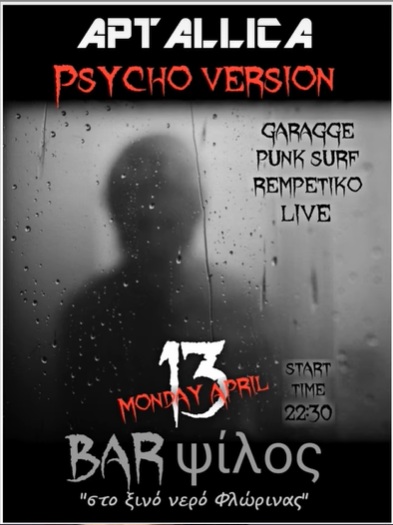 Aptallica Psycho Version στο Bar Ψίλος στο Ξινό Νερό Αμυνταίου. Δευτέρα 13/4/26, 22:30