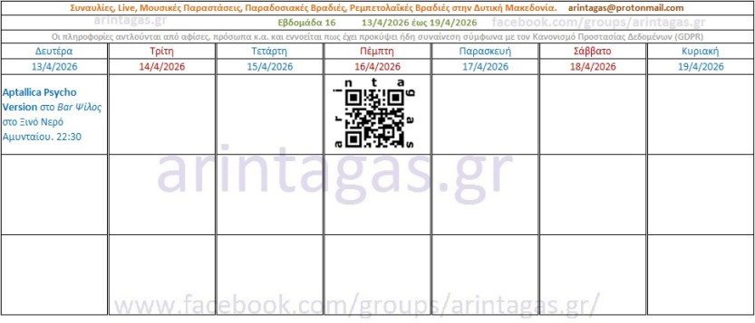 Εβδομάδα 16, 13/4/26 – 19/4/26