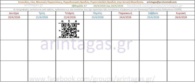 Δημοσιεύτηκε την 27 Μαρτίου 202627 Μαρτίου 2026 Εβδομάδα 17, 20/4/26 – 26/4/26 Κοινοποίηση: Μοιραστείτε στο X(Ανοίγει σε νέο παράθυρο) Χ Mοιραστείτε στο Facebook(Ανοίγει σε νέο παράθυρο) Facebook Μου αρέσει! Φόρτωση...