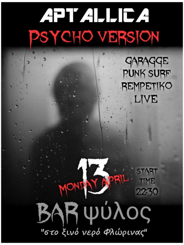Aptallica Psycho Version στο Bar Ψίλος στο Ξινό Νερό Αμυνταίου. Δευτέρα 13/4/26, 22:30Σοφία Κυανίδου κ.α. στο Δρίζειο Ωδείο στην Κοζάνη. Πέμπτη 16/4/26, 18:30