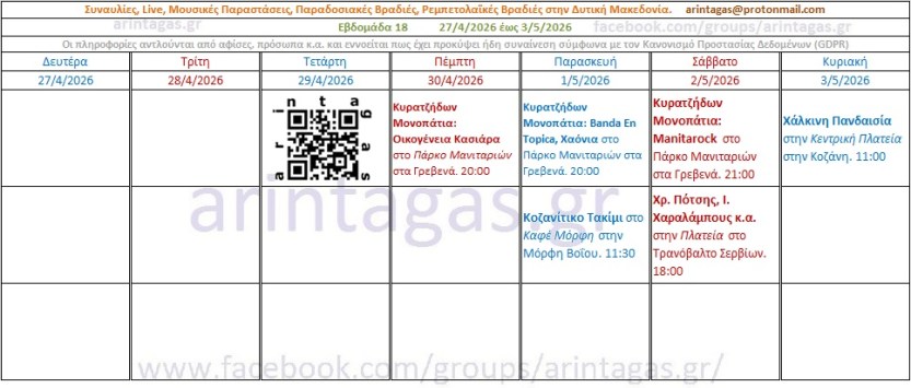 Εβδομάδα 18, 27/4/26 – 3/5/26