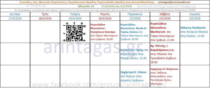 Εβδομάδα 18, 27/4/26 – 3/5/26